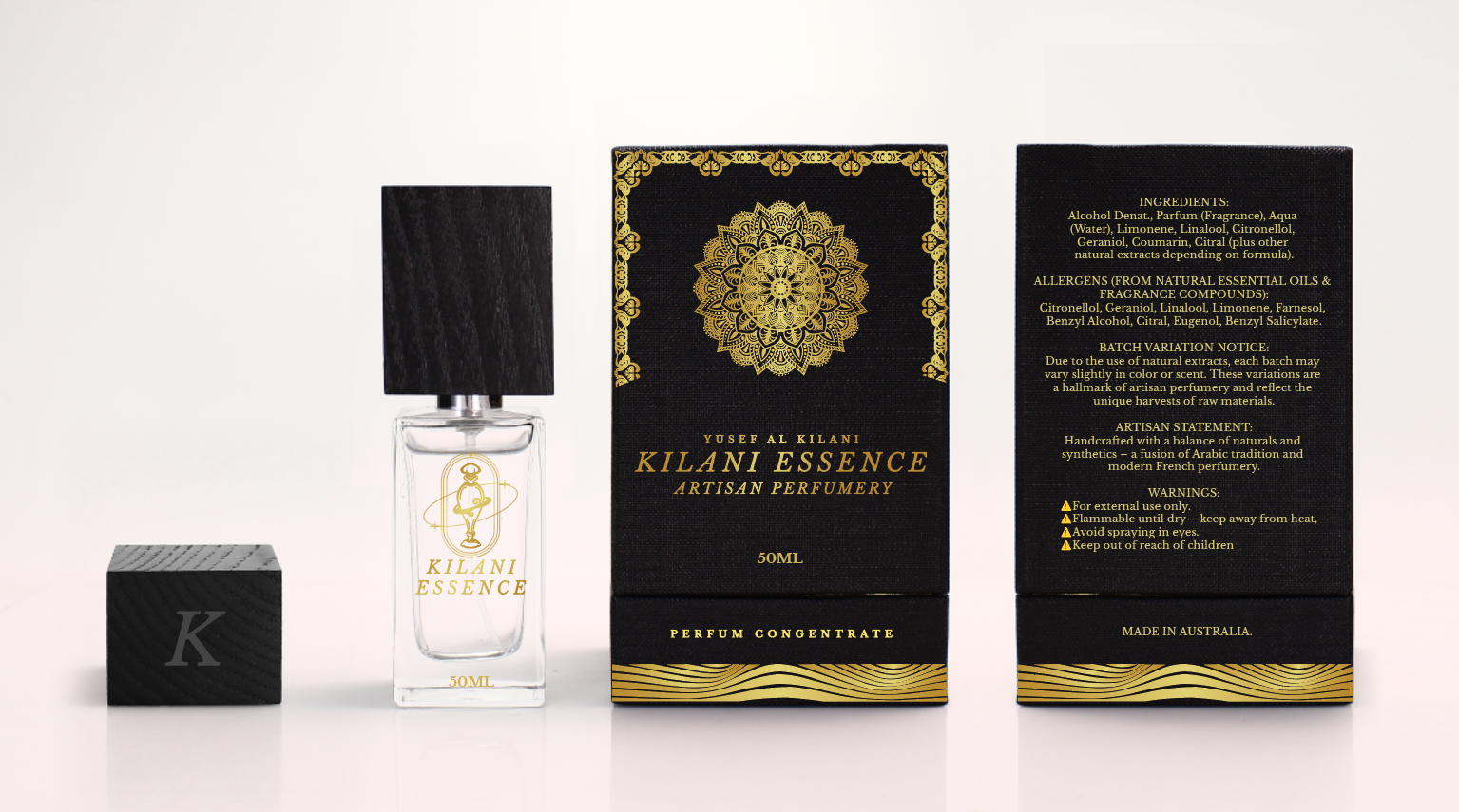 His fragrances draw from a heritage shaped by the Middle East and Australia — two places with their own textures, rituals, and emotional connections. That fusion gives Kilani Essence its signature presence: elegant, resonant, and grounded in authenticity rather than fleeting trends.